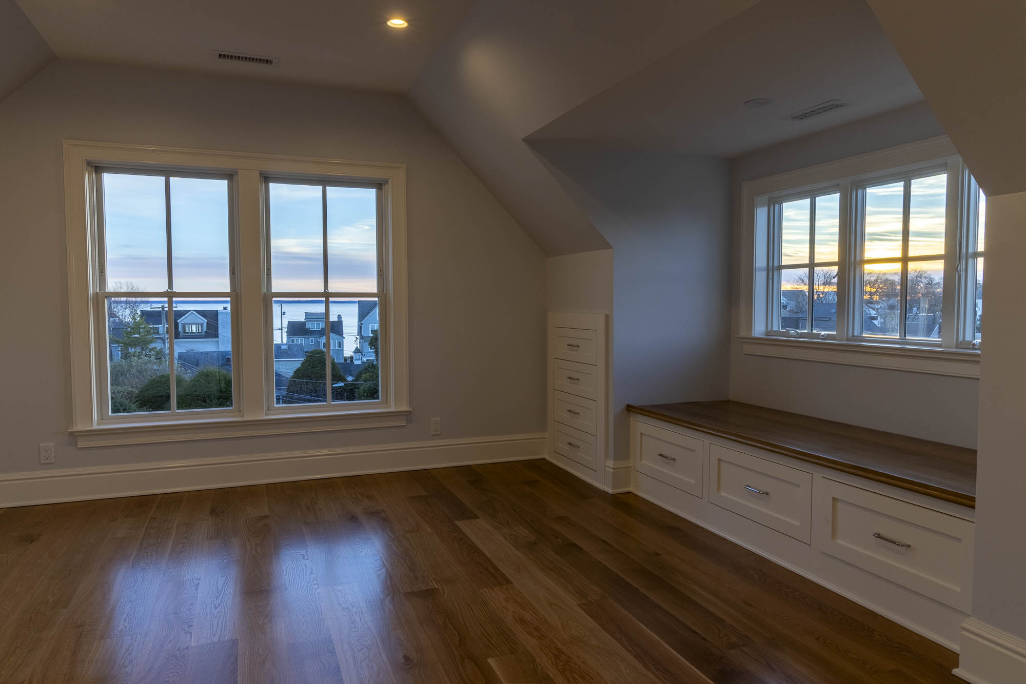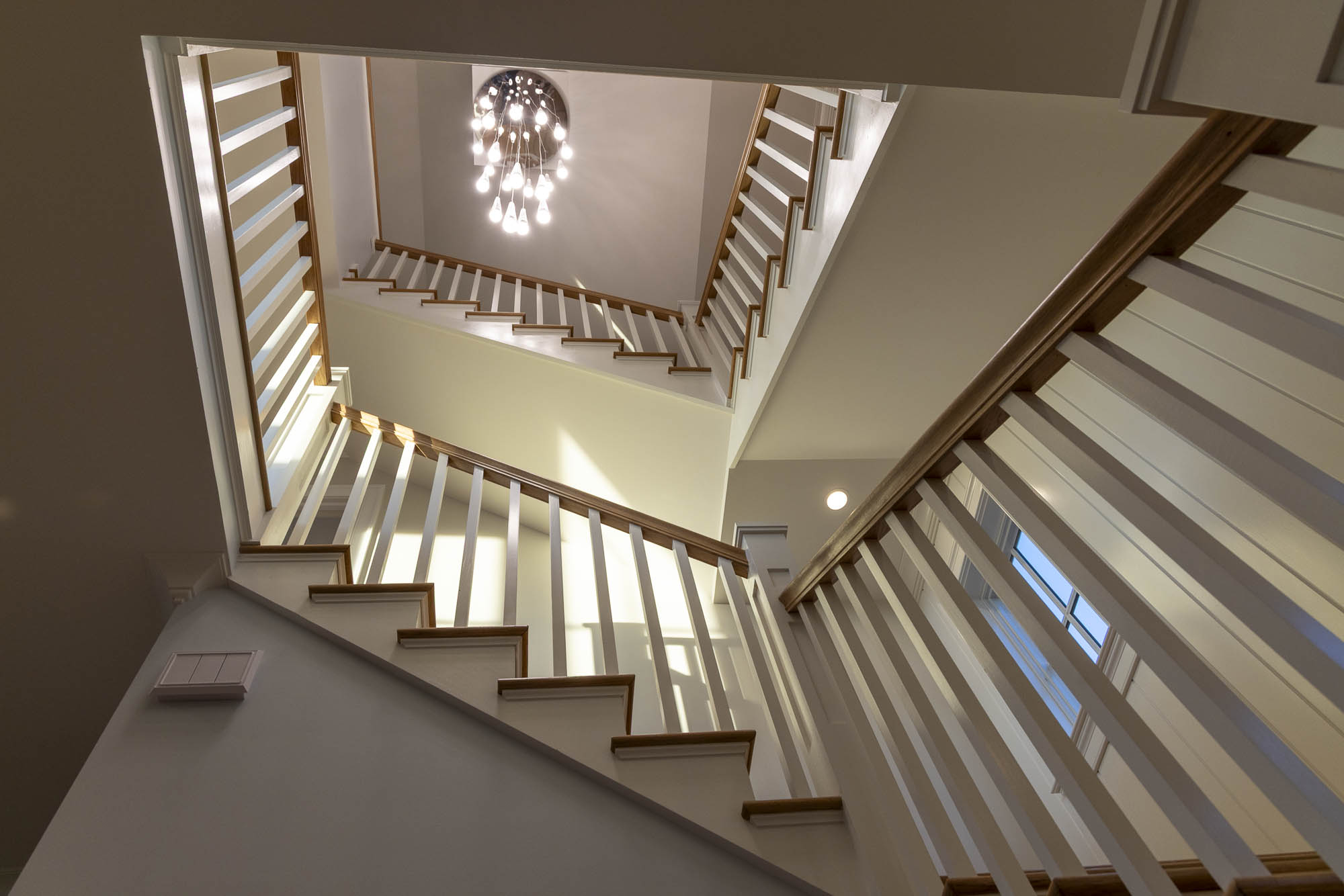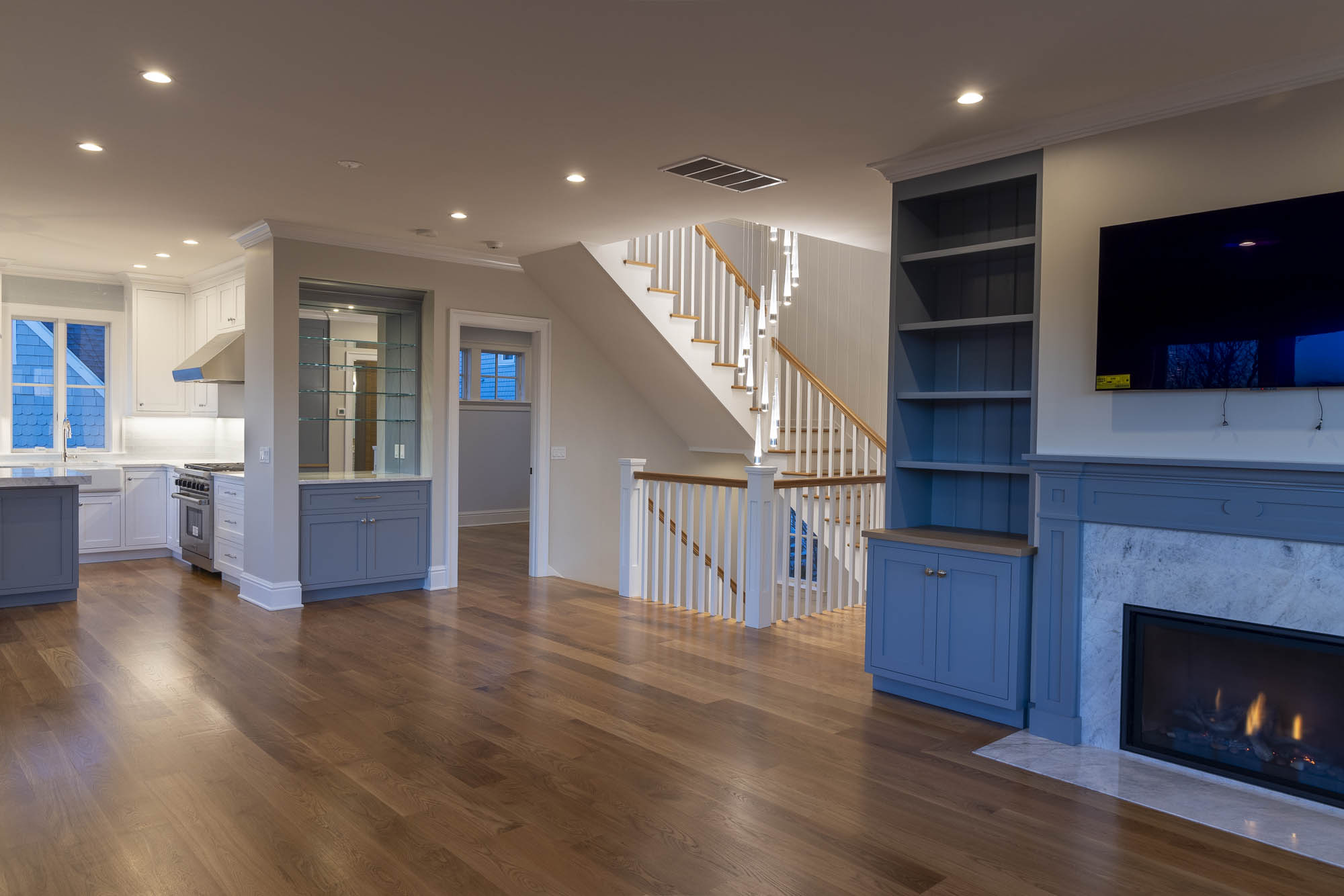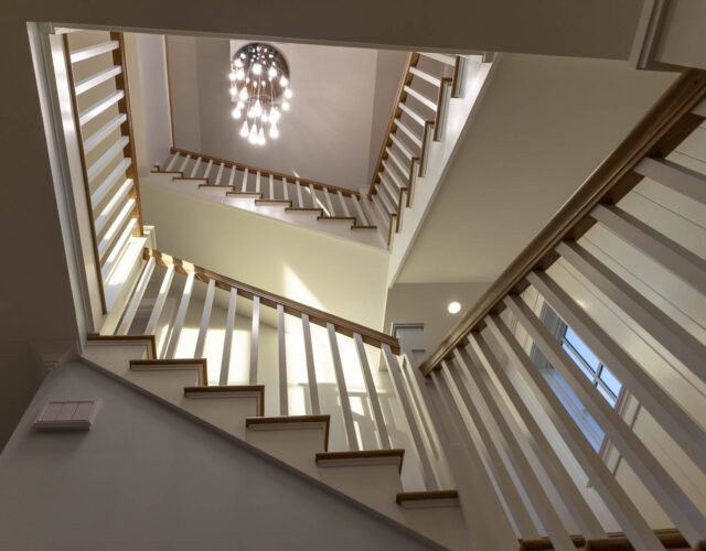This new coastal home near the shore in Norwalk packs a four-story residence that maximizes space, light, and views into an exceptionally tight site. The project required navigating extremely constrained logistics while keeping a 10-month construction schedule. The result is a vertical design that fully embraces its surroundings, with expansive views of the Sound from multiple levels.